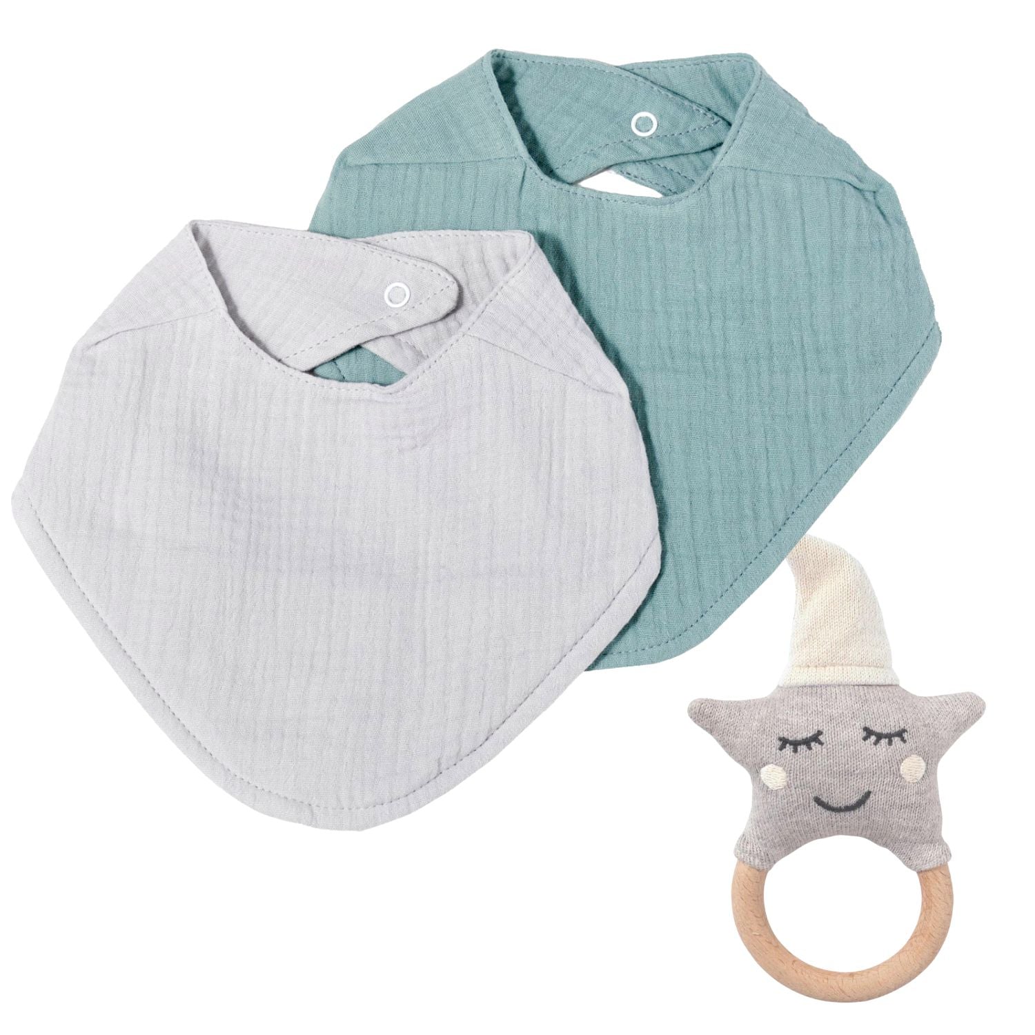 Babygeschenk Lätzchen und Rassel Mint Natur