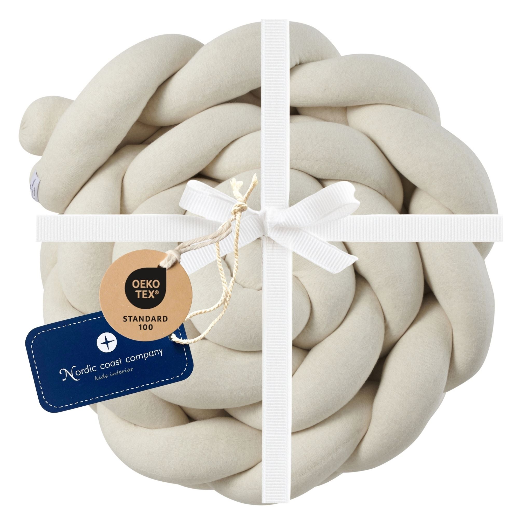Da uns eine gute Qualität und Verarbeitung unserer Produkte wichtig ist, verwenden wir ausschließlich hochwertige Materialien. So wird unser Bettumrandung XL aus 100% kuschliger Baumwolle gefertigt. Die Bettschlange ist zudem nach STANDARD 100 by OEKO-TEX® zertifiziert. Sie wird von Hand geflochten und ihre Enden sind sicher vernäht, sodass sie nicht aufgehen können.
