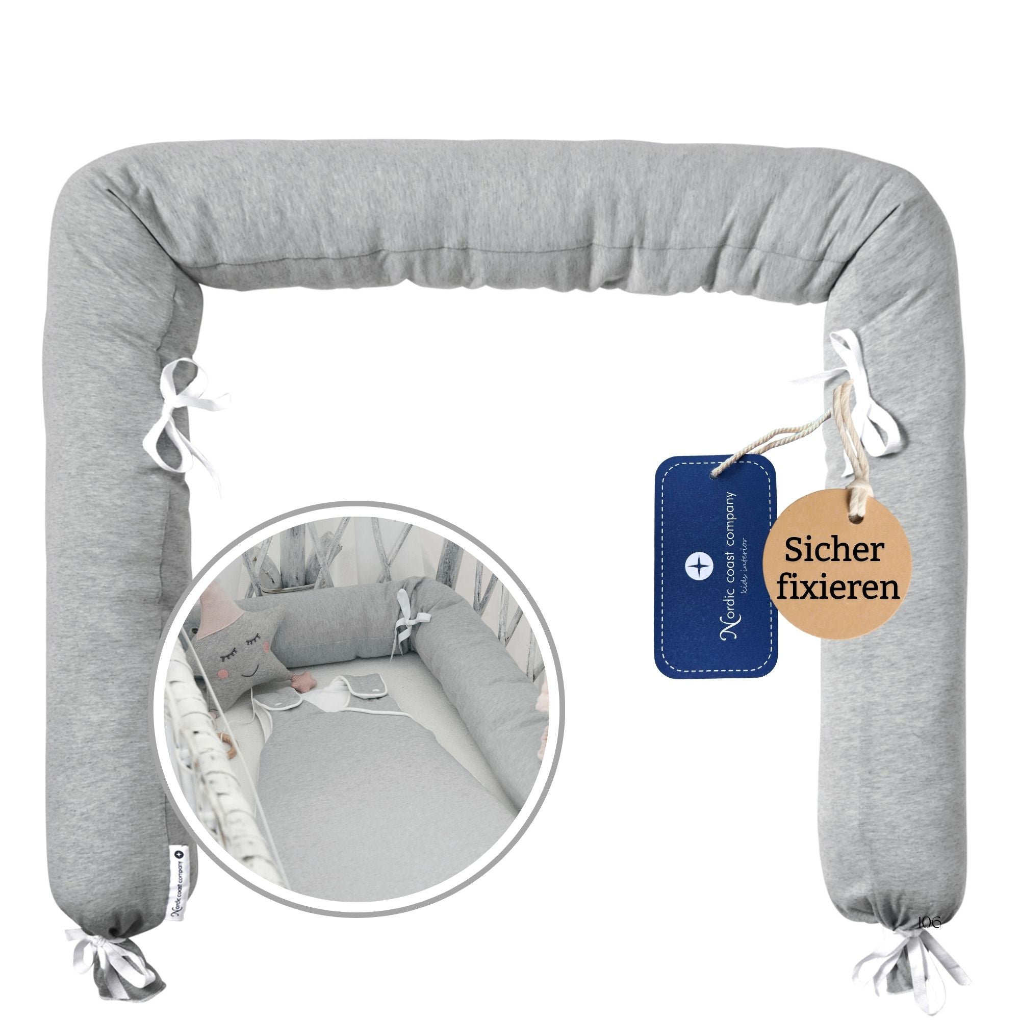 Dein Baby hat noch genügend Platz, um sich rundum wohl zu fühlen. Das Köpfchen wird dabei optimal durch die weiche Füllung geschützt. Die Baby Bettschlange kann multifunktional verwendet werden. Dank der vier Bänder kann die Bettschlange Grau an das Babybett oder die Wiege sicher festgeknotet werden. Dadurch kann sich der Nachwuchs die Bettrolle nicht über das Gesicht ziehen.