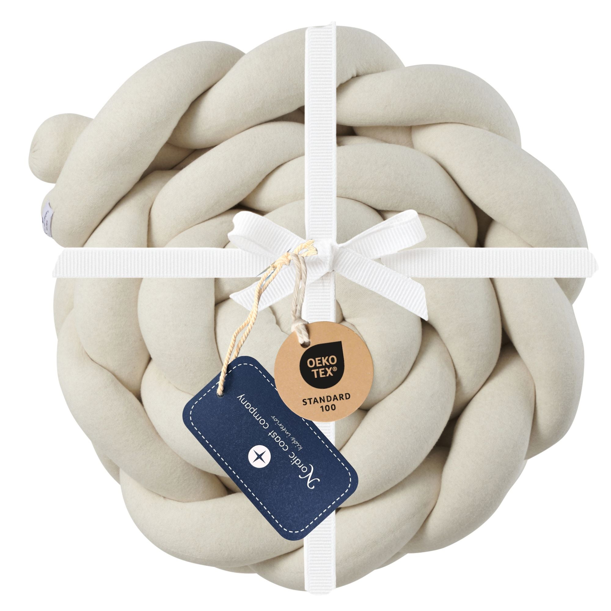 Wir stellen hohe Ansprüche an Material und Verarbeitung unserer Produkte. Das gilt selbstverständlich auch für die Bettschlange Zopf. Die Zopfschlange wurde von Hand gefertigt. Die Enden sind sicher vernäht, so dass sie nicht aufgehen können. Die geflochtene Knotenschlange besteht aus 100% kuscheliger Baumwolle hergestellt. Der Zopf ist zudem nach STANDARD 100 by OEKO-TEX® zertifiziert.