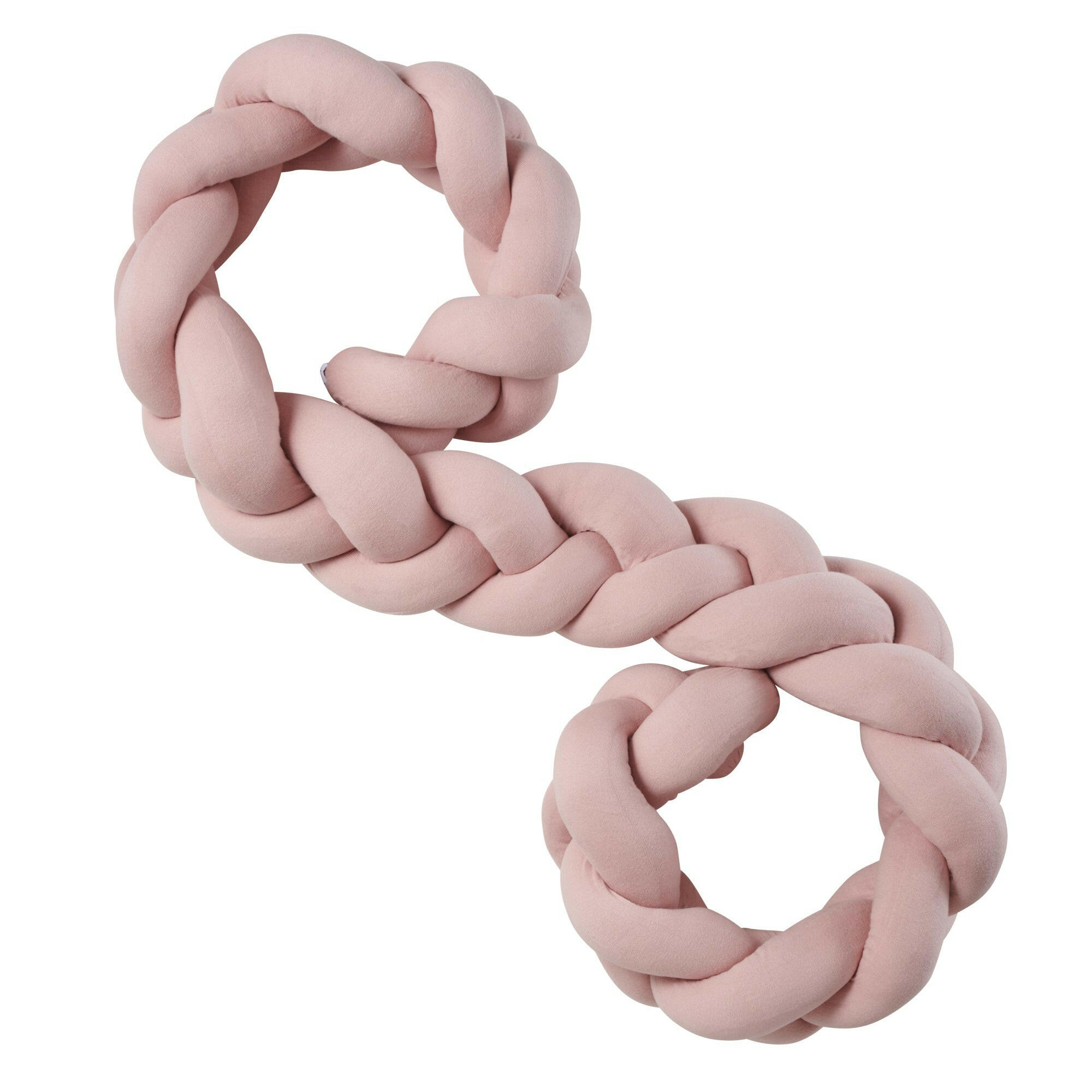 Die wunderschöne Bettschlange geflochten in Rosa Jersey schmal schützt Dein Baby davor, mit dem Köpfchen am Bettrand anzustoßen. Sie besteht aus 100% Baumwolle und ist somit kuschelig weich. So fühlt sich Dein Kind in der Wiege oder im Babybett rundum sicher und geborgen. Das einzigartige Zopfdesign sieht dabei nicht nur besonders hübsch aus, es erfüllt auch praktische Funktionen.