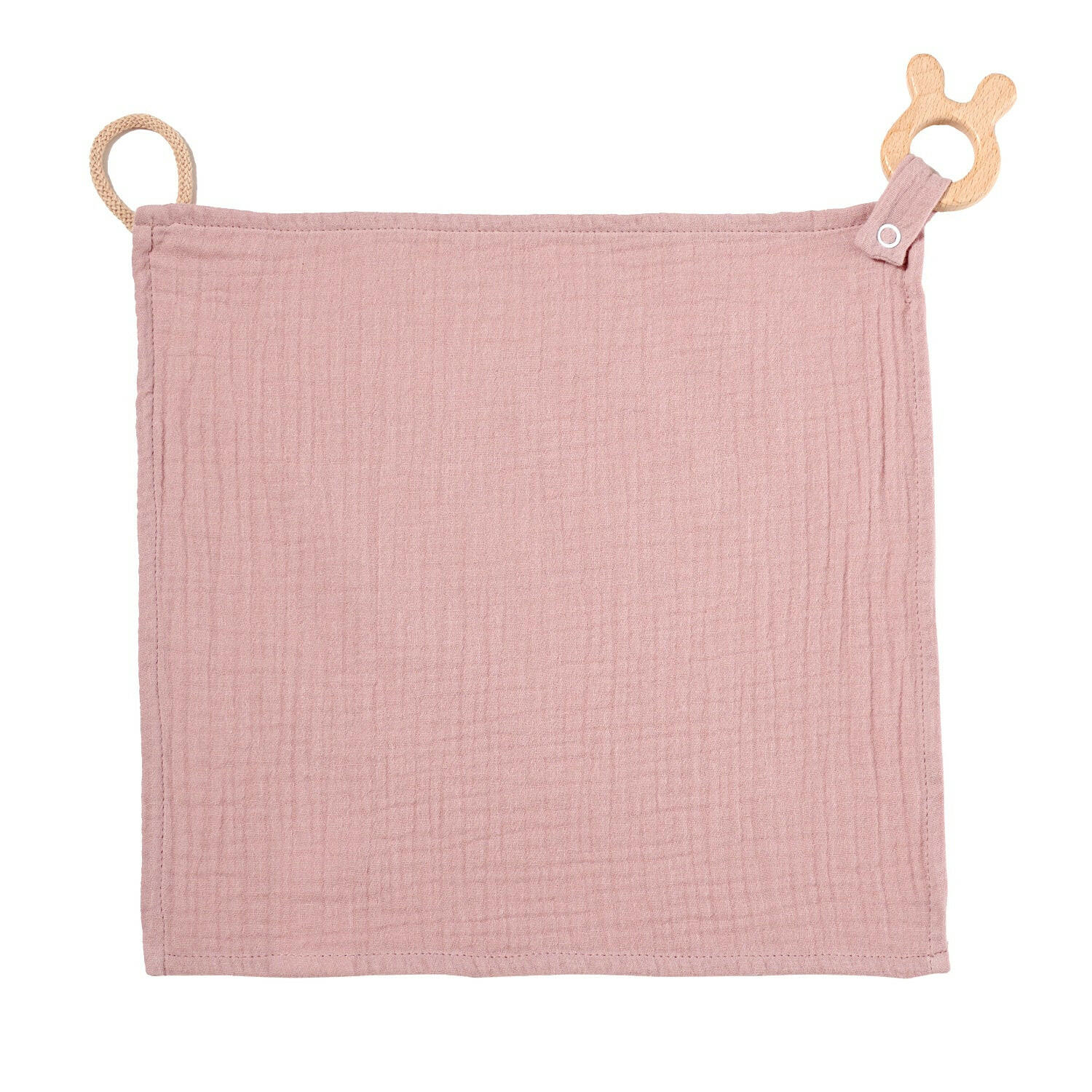 Das Schmuse Tuch ist mit den Maßen 30x30 cm nicht zu groß und nicht zu klein. Das weiche Musselin ist robust und der Beißring am Zipfel ist nicht nur niedlich anzusehen, sondern praktisch zugleich: Er hilft dem Baby beim Zahnen und lindert eventuelle Zahnungsschmerzen. Außerdem ist der Beißring im Hase Design für kleine Babyhände gut zu greifen und fördert durch die unterschiedlichen Materialien und Formen die taktile und motorische Wahrnehmung Deines Babys. So hat Dein Baby einen kuscheligen Begleiter, mit dem er auch spielen kann. Dank des eingearbeiteten Schnullerbandes kann im Nu ein Schnuller befestigt werden.