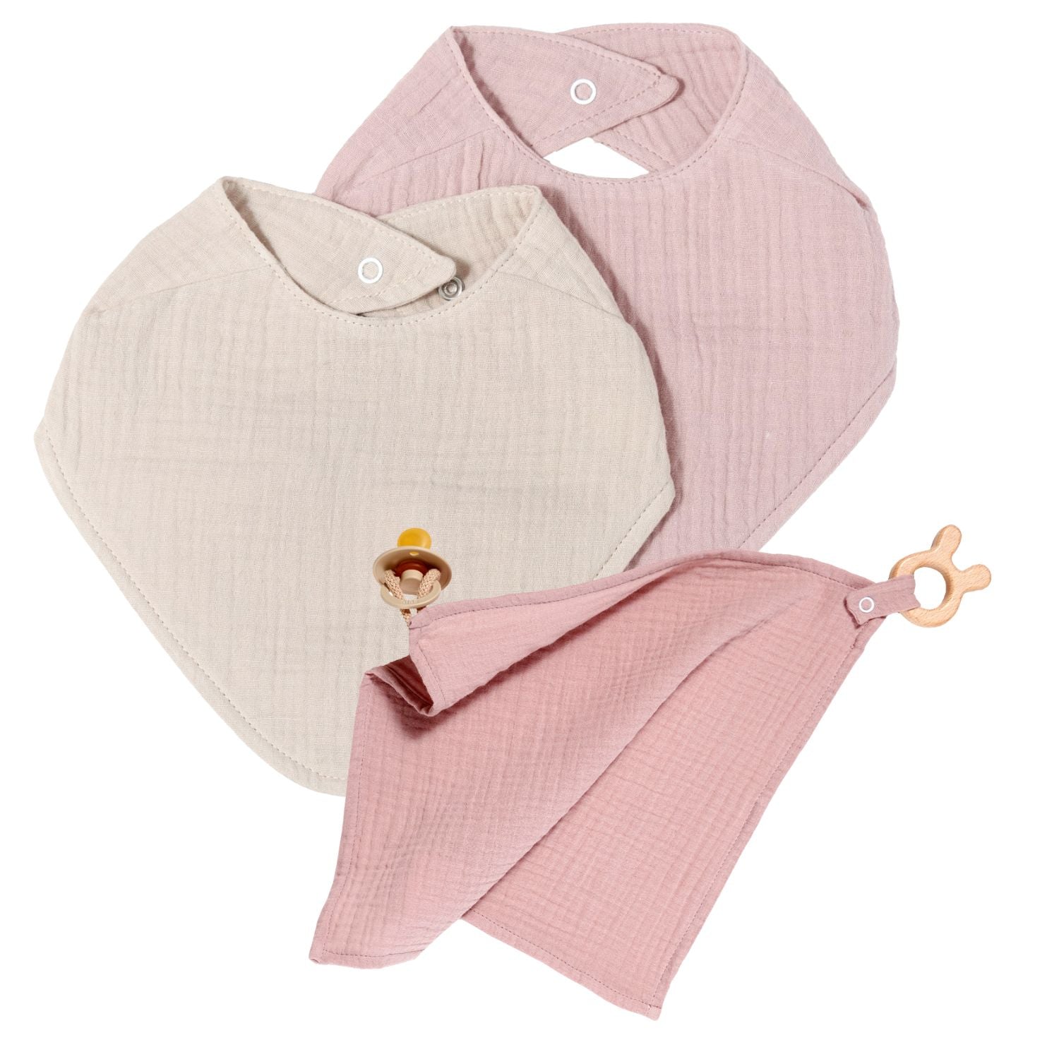 Süßes Geschenke-Set Lätzchen Rosa + Kuscheltuch Rosa