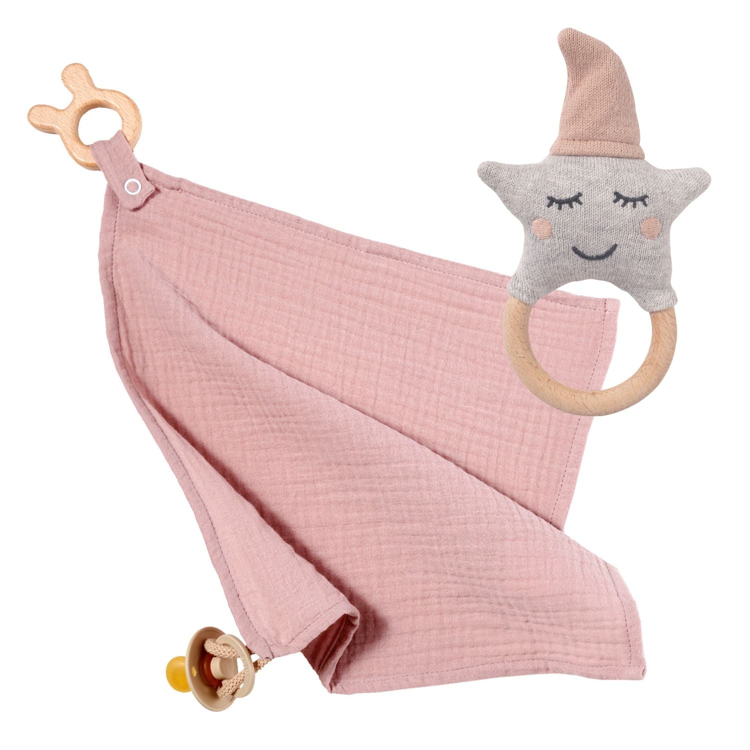 Baby Geschenk Rassel und Kuscheltuch Rosa