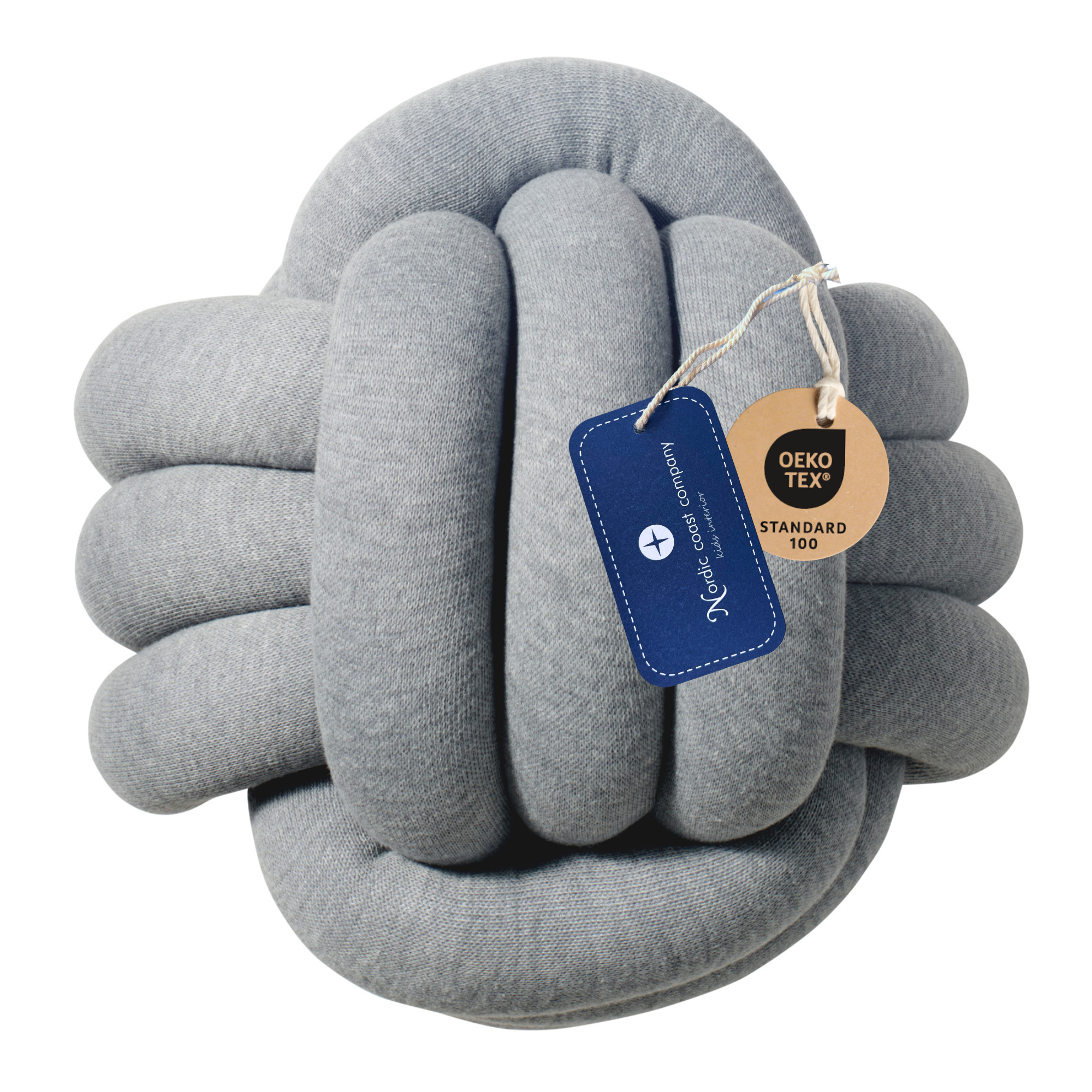 Das moderne Knotenkissen Strick Grau setzt in jedem Wohnzimmer, Kinderzimmer oder Schlafzimmer tolle Akzente. Das Dekokissen im stylischen Knoten Design bietet stabilen Halt und ist dennoch kuschelig weich. Durch die Verarbeitung von hochwertigem Feinstrick unterscheidet es sich merklich von herkömmlichen Knotenkissen aus Jersey.