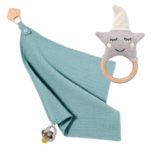 Babygeschenk Set Schnullertuch + Rassel Mint Natur
