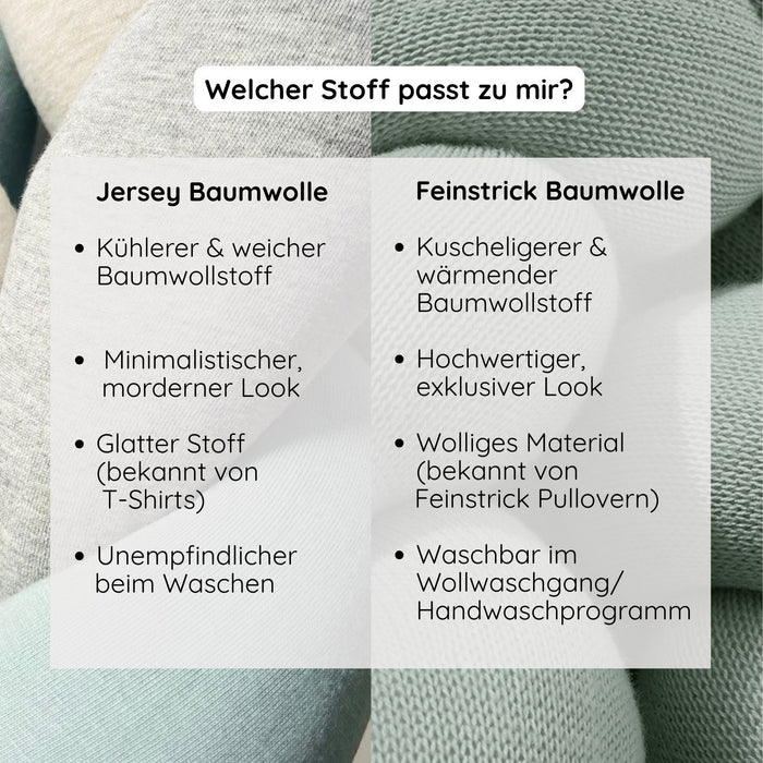 La tresse de lit pour bébé vous invite à saisir, caresser et câliner avec sa structure ferme et tressée ainsi qu'une surface tricotée douce et câline. Cela favorise la perception tactile et la motricité de votre enfant. La bordure de lit peut être adaptée à toutes les tailles de lit courantes et peut également être utilisée sur la table à langer comme protection contre les chutes ou sur la couverture de jeu.