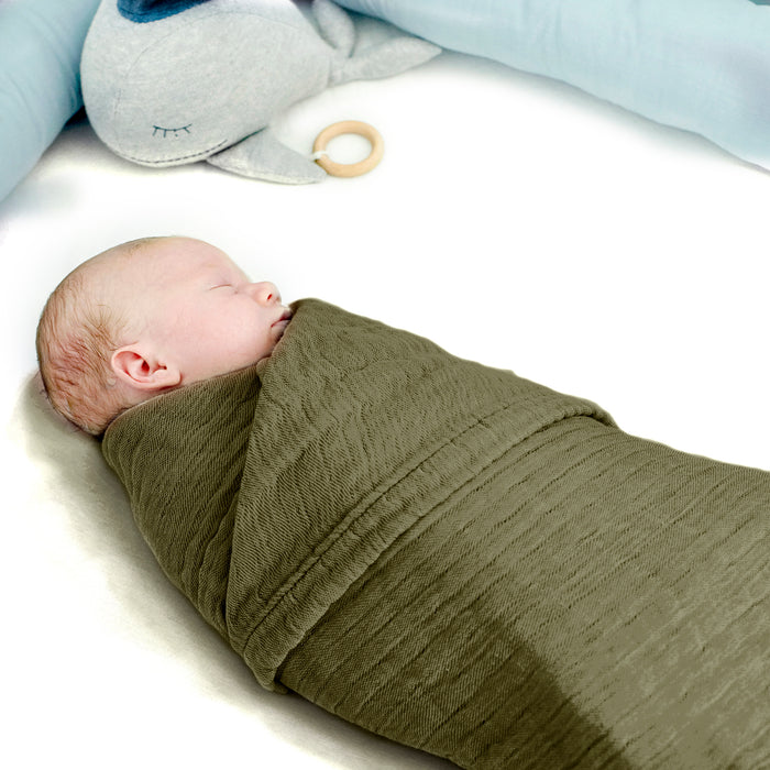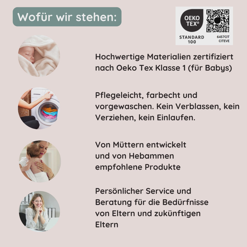 Sa nature douce, respirante, lisse et légèrement extensible fait de la couverture en mousseline la couverture d'emmaillotage idéale. Contrairement à un "lange" normal, il tient particulièrement chaud car il est 4 fois plus épais. Que ce soit dans le Maxi Cosi, dans la poussette, pour les déplacements ou simplement pour la maison.