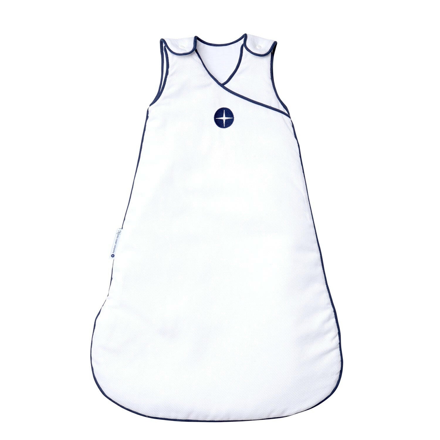 Dieser Baby Schlafsack Weiss-Blau sorgt für Küstenflair! Edel, schlicht und schön ist dieser weiße Babyschlafsack in frischem Weiß aus 100% feinem Waffelpiqué aus Baumwolle. Die Vliesfüllung ist bewusst gewählt, da sie antibakteriell ist, keine Gerüche hält (wie z.B. Baumwolle) und beim Waschen nicht klumpt. Die Umrandung aus dunkelblauem Baumwoll-Satin, ergänzt durch unseren gestickten Kompass-Stern, lassen ihn zum Lieblingsstück im Kinderbett werden!